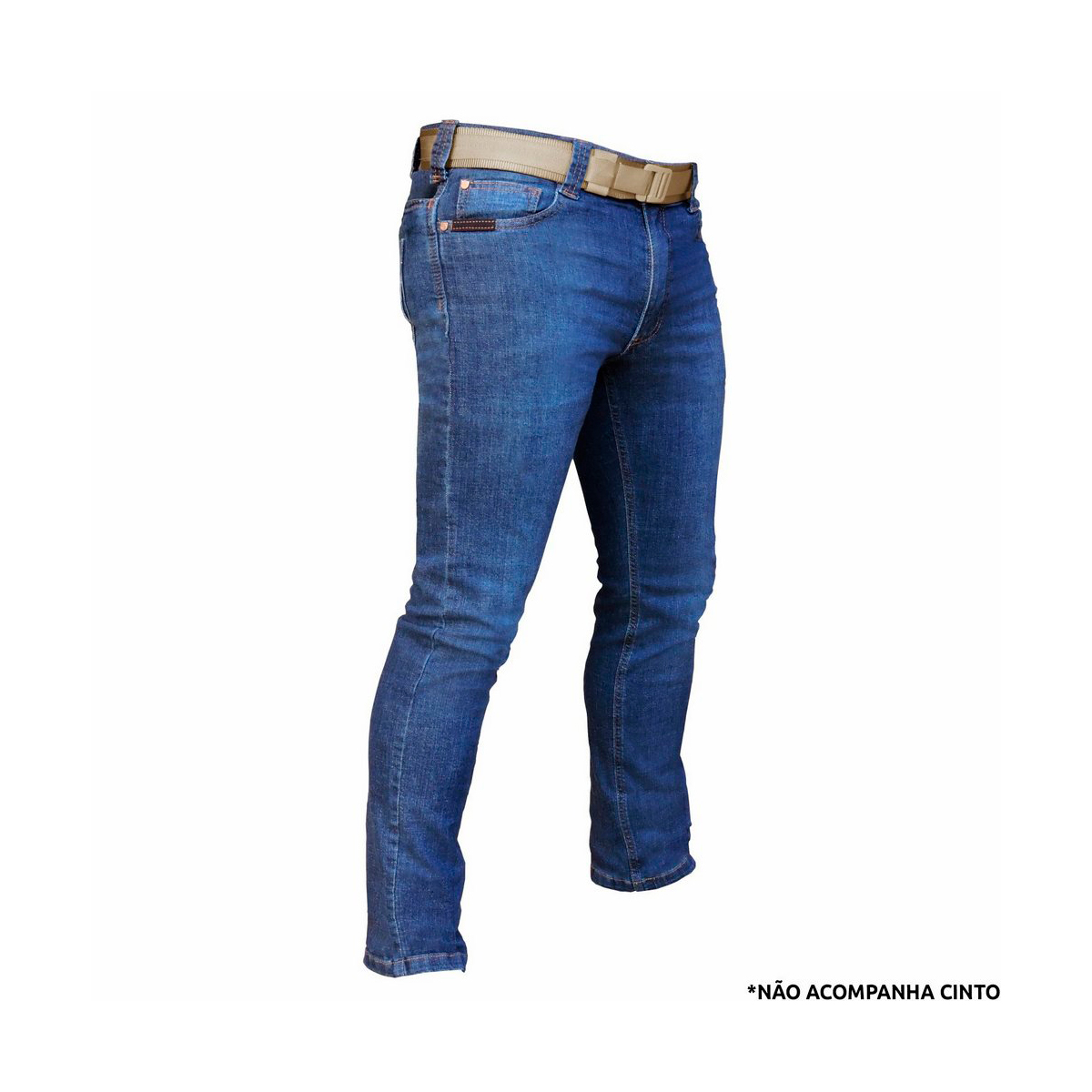 Produzida em tecido Jeans com Lycra, oferecendo conforto e durabilidade ideais para as suas atividades operacionais e casuais. Possui bolsos táticos velados e sistema de encaixe para carregadores de pistola. É composta por 97% algodão e 3% elastano, com toque diferenciado (macio) e baixo índice de amarrotamento.