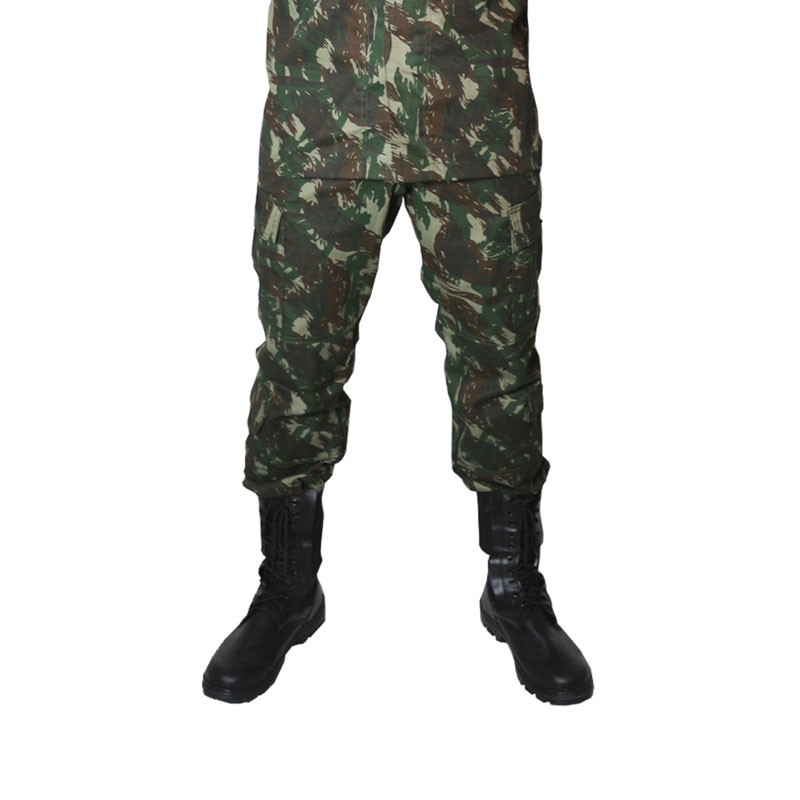 A calça camuflada Exército Brasileiro modelo 8 bolsos é produzida em tecido Rip Stop, material composto por 67% poliéster e 33% algodão, o que garante o conforto e a mobilidade em sua utilização.