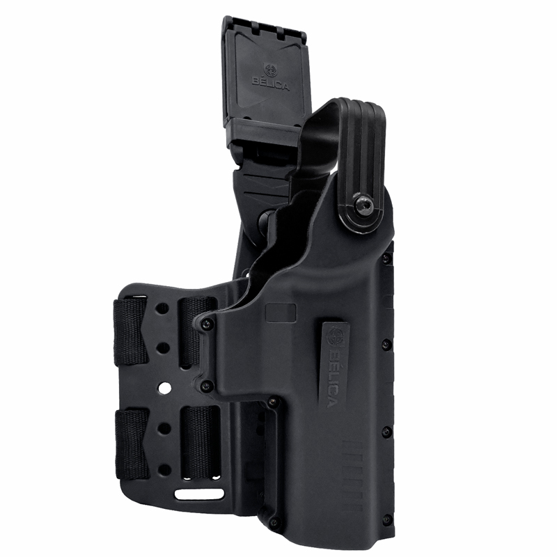 O Coldre H3 Bélica é a união de operacionalidade e desempenho, contando com novo revestimento interno, bem como um design remodelado para dar uma empunhadura perfeita no momento do saque. Possui 6 adaptadores de guarda-mato para ajuste da retenção passiva, assim evitando que seu equipamento coldreado fique solto.