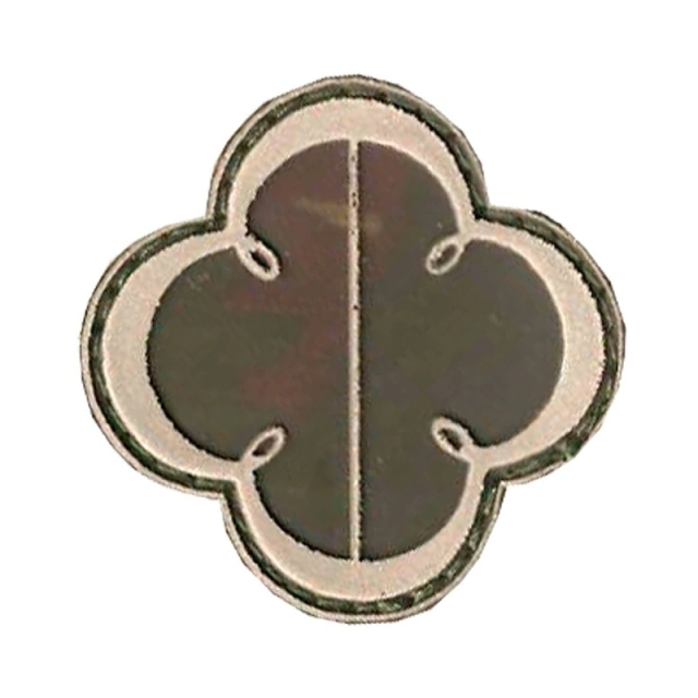 - Brevê emborrachado confeccionado pelo processo de moldagem a quente, na cor cinza, sobre um suporte na cor camuflada, sendo aplicado por meio de velcro na cor verde oliva;